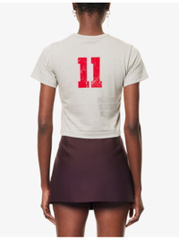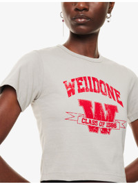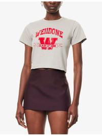 PRODUCT DETAILS - WE11DONE cotton-jersey T-shirt - 100% cotton - Slim fit, round-neck, short sleeves, brand and text print at front, number print at back - Dry clean - True to size - Model is 5ft 10in/1.78m and wears a size small - Lightweight, stretchy Ref: R04485090