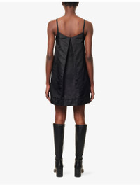 PRODUCT DETAILS - WE11DONE shell mini dress - 100% nylon; lining 100% polyester - Relaxed fit, A-line silhouette, square neckline, sleeveless, two buttoned pockets at front, pleated at back, all-over padded, fully lined, flared hem - Dry clean - True to size - Size small: length 32in / 82cm - Model is 5ft 10in/1.78m and wears a size small - Midweight, non-stretch Ref: R04485075