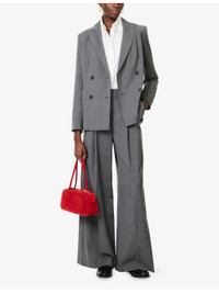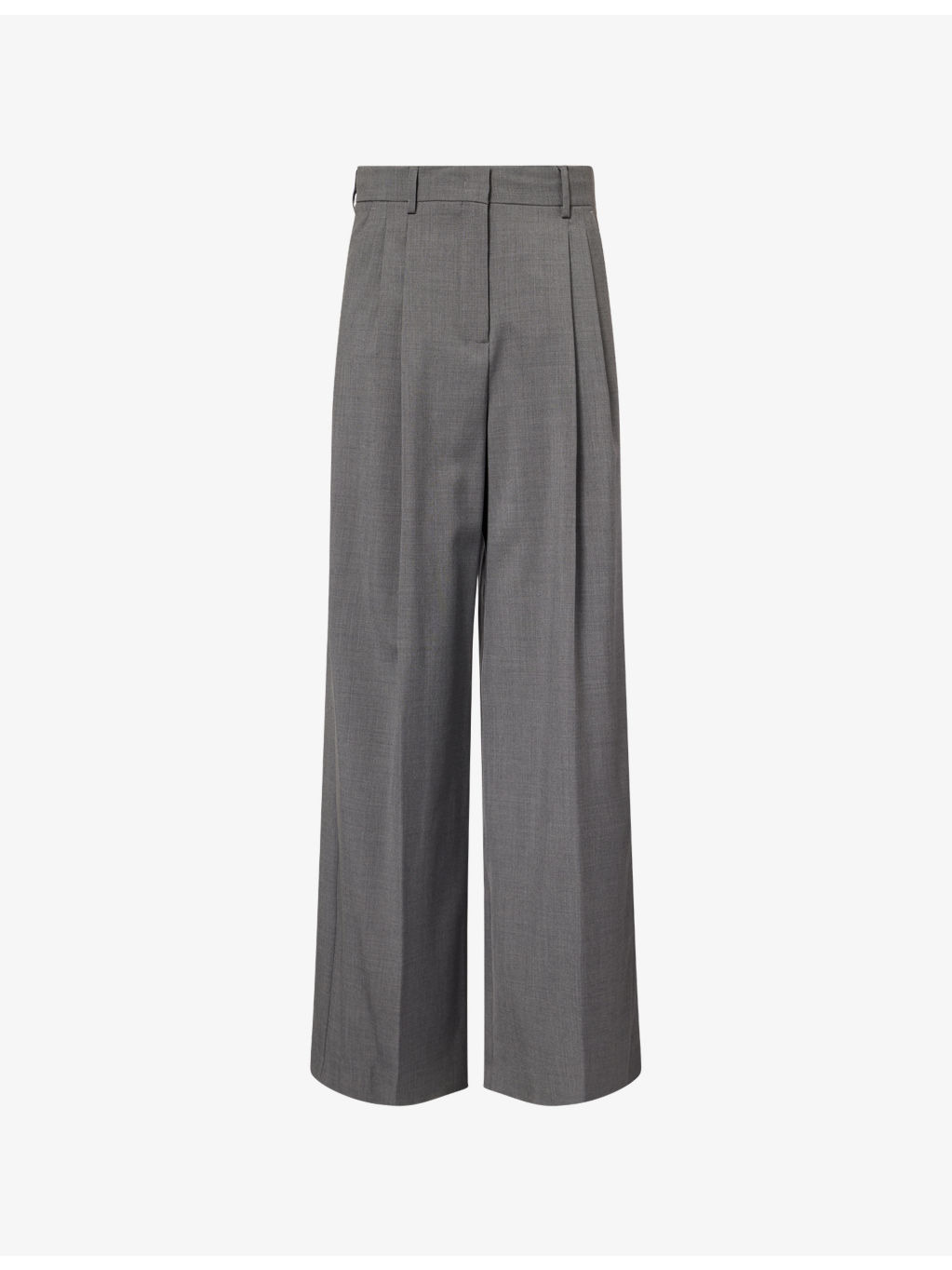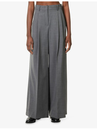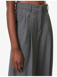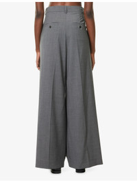 PRODUCT DETAILS - Weekend Max Mara wool trousers - 100% wool - Concealed button, hook-and-eye and zip-fly fastenings at front - Regular fit, high-rise, wide leg, belt loops, pleats at front, side slip pockets, welt pockets at back - Dry clean - True to size - Size UK 8: rise 14in / 36cm, inside leg 32in / 81cm, leg opening 27in / 69cm - Model is 5ft 10in/1.78m and wears a size UK 8 - Midweight, non-stretch Ref: R04504404