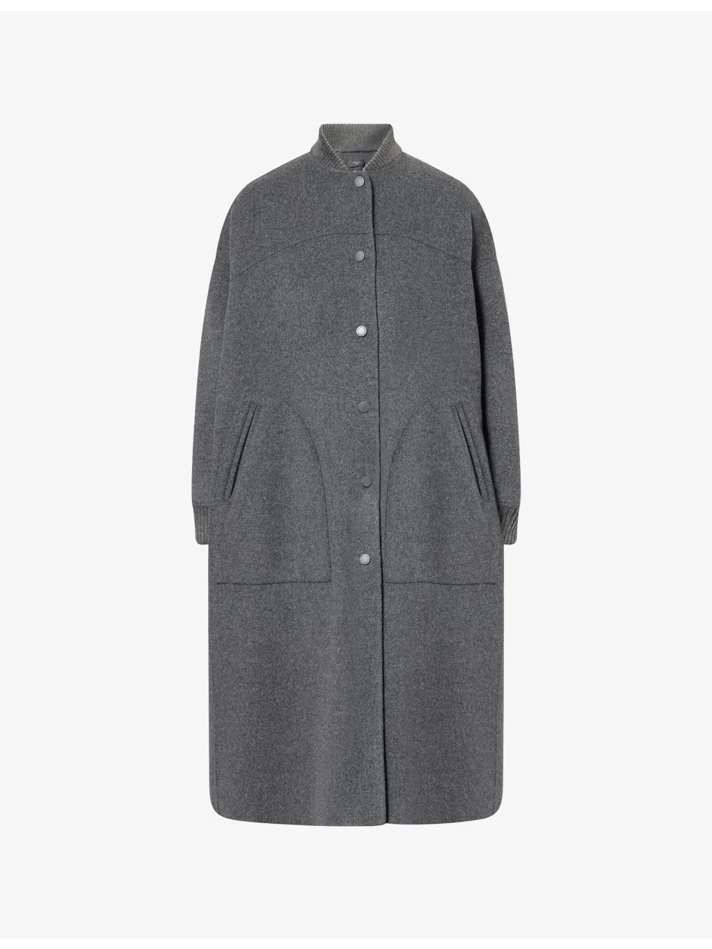 PRODUCT DETAILS - Weekend Max Mara wool-blend coat - 90% virgin wool, 10% polyamide - Pressed stud fastening - Relaxed fit, ribbed collar, long sleeves, angled slip pockets at front, brushed texture - Dry clean only - True to size - Size UK 8: length 45in / 115cm - Model is 5ft 10in/1.78m and wears a size UK 8 - Midweight, non-stretch Ref: R04552926