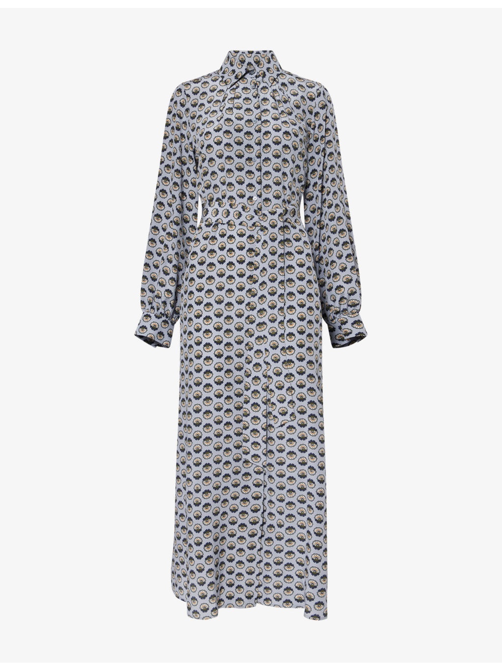 PRODUCT DETAILS - Weekend Max Mara silk maxi dress - 100% silk - Exposed button fastening at front - Loose-fit, pointed collar, long sleeves, two slip pockets at sides, buttoned cuff, all-over graphic print, maxi length - True to size - Model is 5ft 10in/1.78m and wears a size UK 8 - Lightweight, non-stretch Ref: R04478759