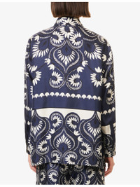 PRODUCT DETAILS - Weekend Max Mara silk blouse - 100% silk - Button fastening - Pointed collar, long sleeves, buttoned cuffs, one patch pocket at chest, all-over graphic print design, curved hem - Dry clean - True to size - Size UK 8: length 78.7in / 73cm - Model is 5ft 10in/1.78m and wears a size UK 8 - Lightweight, non-stretch Ref: R04552954