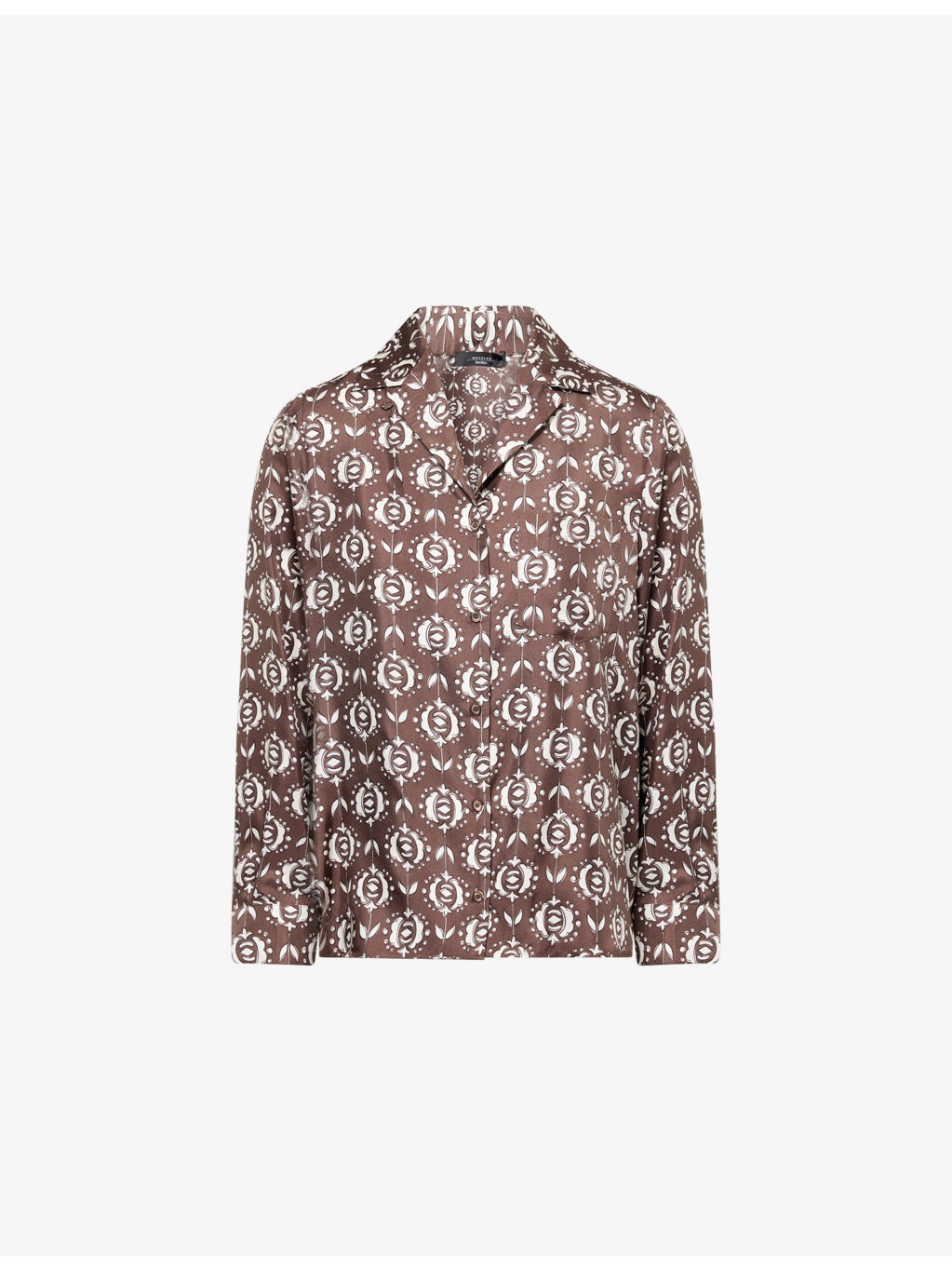 PRODUCT DETAILS - Weekend Max Mara silk shirt - 100% silk - Exposed button fastenings at front - Regular fit, pointed collar, long sleeves, buttoned cuffs, one chest patch pocket, short side slits, all-over graphic print - Dry clean - True to size - Size UK 8: length 25in / 64cm - Model is 5ft 10in/1.78m and wears a size UK 8 - Lightweight, non-stretch Ref: R04478736