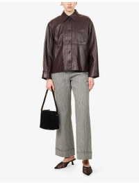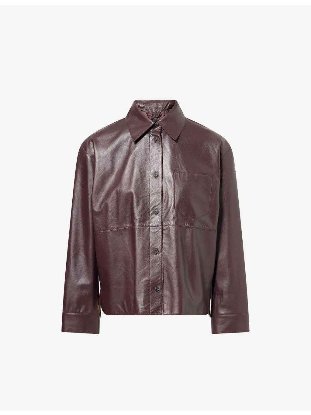 PRODUCT DETAILS - Weekend Max Mara leather jacket - 100% leather - Button fastening - Regular fit, collar, long sleeves, buttoned cuffs, patch pocket at chest, panelled, curved hem, lined - Specialist leather clean - True to size - Size UK 8: length 25in / 64cm - Model is 5ft 10in/1.78m and wears a size UK 8 - Lightweight, non-stretch Ref: R04552974