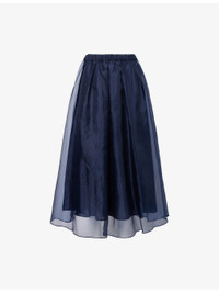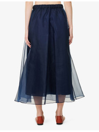 Pleated silk organza skirt - NAVY