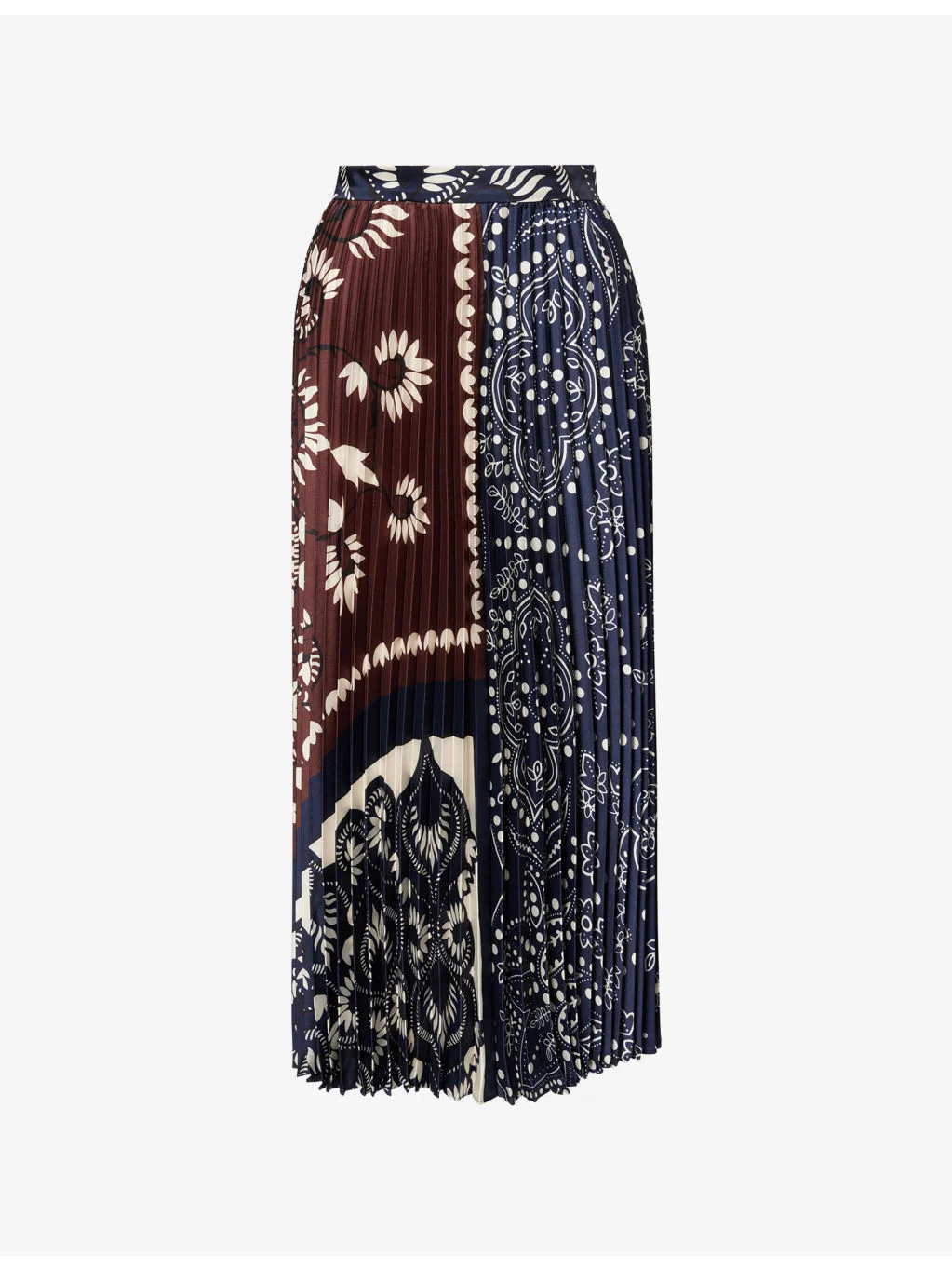 PRODUCT DETAILS - Weekend Max Mara woven midi skirt - 100% polyester - Regular fit, mid-rise, elasticated waistband, printed design, pleat hem - Dry clean only - True to size - Size UK 8: length 34in / 86cm - Model is 5ft 10in/1.78m and wears a size UK 8 - Lightweight, non-stretch Ref: R04552937