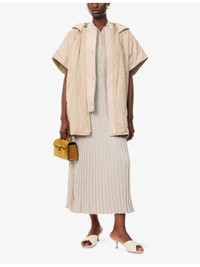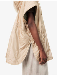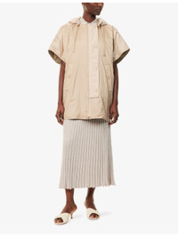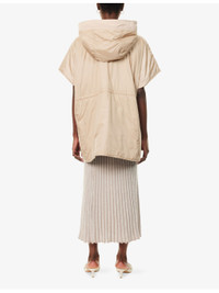 PRODUCT DETAILS - Weekend Max Mara shell jacket - 100% polyester; filling 49% polyester, 46% camel wool, 5% silk; lining 100% polyamide - Popper fastening at front - Relaxed fit, round-neck, detachable drawstring hood, cap sleeves, two buttoned pockets at front, brand patch at back, button fastening at sides, internal drawstring at waist, all-over quilted and padded, fully lined - Dry clean - True to size - Size UK 8: length 31in / 79cm - Model is 5ft 10in/1.78m and wears a size UK 8 - Midweight, non-stretch Ref: R04478760