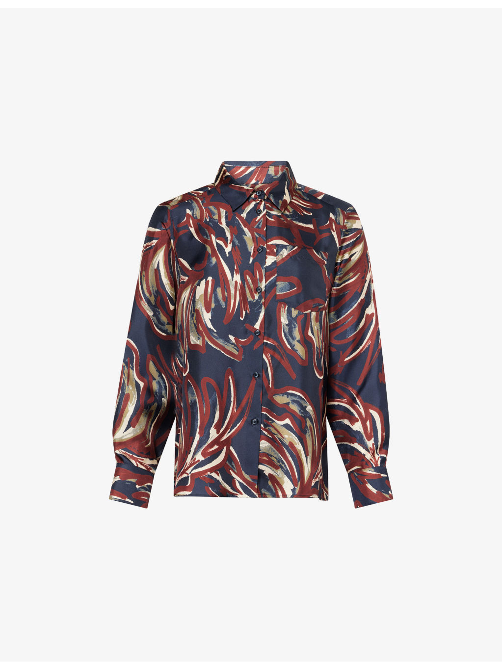 PRODUCT DETAILS - Weekend Max Mara silk shirt - 100% silk - Button fastening - Regular fit, collar, long sleeves, buttoned sleeve hems, patch pocket at chest, abstract pattern, curved hem - Dry clean only - True to size - Size UK 8: length 27in / 69cm - Model is 5ft 10in/1.78m and wears a size UK 8 - Lightweight, non-stretch Ref: R04504401