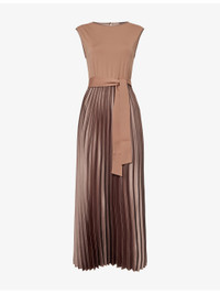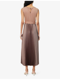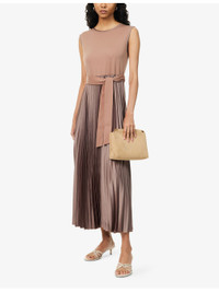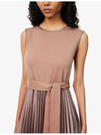 PRODUCT DETAILS - Weekend Max Mara jersey and satin midi dress - 100% polyester - Crewneck, sleeveless, adjustable/detachable belt, darted waist, pleated skirt, binding at trims - Dry clean - True to size - Size UK 8: length 53.1in / 135cm - Model is 5ft 10in/1.78m and wears a size UK 8 - Lightweight, slight stretch Ref: R04478685