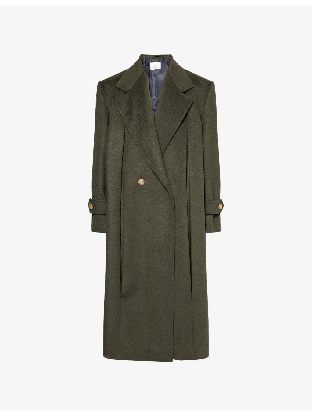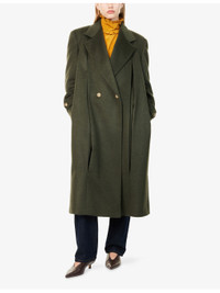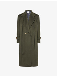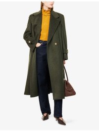 PRODUCT DETAILS - Weekend Max Mara wool coat - 100% virgin wool; lining 50% acetate, 50% viscose - Exposed button fastening at front - Relaxed fit, double-breasted, notch lapels, padded shoulders, long sleeves, buttoned epaulette at cuffs, two slip pockets at front, pleated at front and back, fully lined, single vent - Dry clean - True to size - Size UK 8: length 44in / 113cm - Model is 5ft 10in/1.78m and wears a size UK 8 - Heavyweight, slight stretch Ref: R04504432