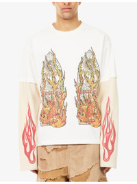 Flame Glass Graphic-Print Layered Cotton-Jersey Top