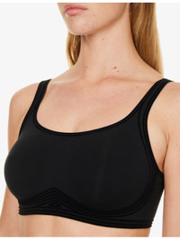 PRODUCT DETAILS - Wolford stretch-woven bra - 66% cotton, 34% elastane - Hook-and-eye fastening at back - Scoop neck, adjustable shoulder straps, contrasting panels, fully lined - Machine wash cold - True to size - Model is 5ft 9in / 1.75m and wears a size 34D - Lightweight, stretchy Ref: R04000756