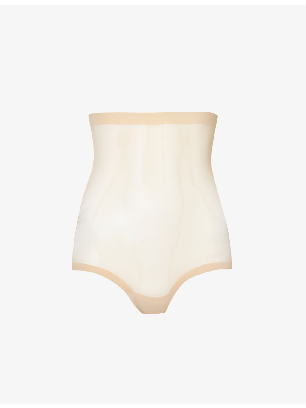 PRODUCT DETAILS - Wolford stretch-tulle briefs - 67% polyamide, 33% elastane; lining 47% polyamide, 42% cotton, 11% elastane - Slips on - Slim-fit, high-rise, elasticated waistband, semi-sheer tulle panels, slight-coverage at back, lined gusset - Machine wash cold - True to size - Model is 5ft 10in/1.78m and wears a size UK 8 - Lightweight, stretchy - For hygiene reasons, this product cannot be exchanged or refunded, unless faulty.