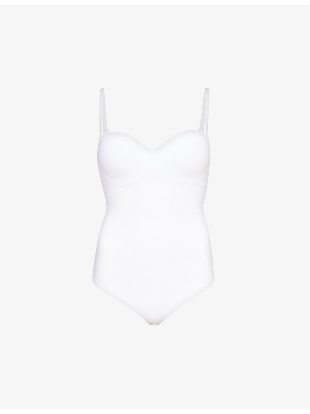 PRODUCT DETAILS - Wolford stretch-woven body - 80% polyamide, 20% elastane - Popper fastenings at gusset - Sculpted fit, sweetheart neck, adjustable branded shoulder straps, moulded cups, detachable padded insert at cups, underwired, V-string at back, lined gusset - Hand wash - True to size - Model is 5ft 10in/1.78m and wears a size small - Lightweight, stretchy - For hygiene reasons, this product cannot be exchanged or refunded, unless faulty