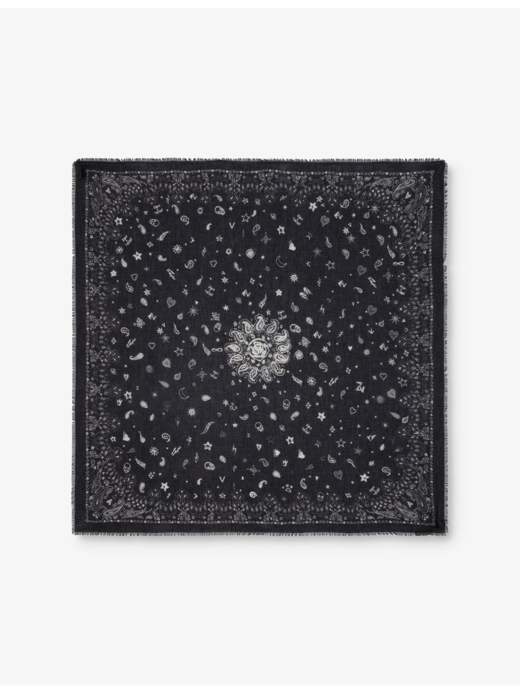 PRODUCT DETAILS - Zadig&Voltaire cotton scarf - 100% cotton - Self-tie fastening - Square silhouette, bandana pattern, frayed edges - Length 120cm, width 120cm - Hand wash - Lightweight, non-stretch Ref: R04416114