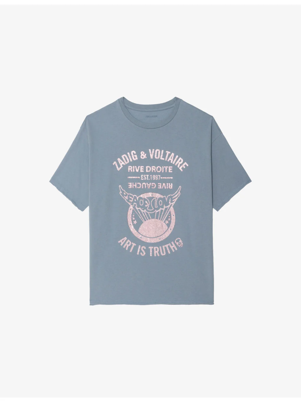 PRODUCT DETAILS - Zadig&Voltaire cotton T-shirt - 100% cotton - Relaxed fit, round neck, short sleeves, logo graphic print at the front - Machine wash at 30°C - True to size - Model is 5ft 10in/1.80m and wears a size small - Midweight, non-stretch Ref: R04611410