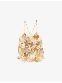PRODUCT DETAILS - Zadig&Voltaire silk top - 100% silk - Regular fit, V-neck, thin straps, lace trim, all-over horse print - Hand wash - True to size - Model is 5ft 9in/1.75m and wears a size small - Lightweight, non-stretch Ref: R04545126