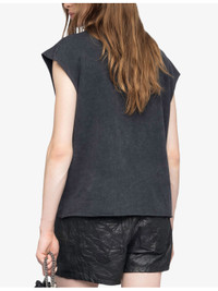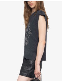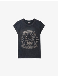 PRODUCT DETAILS - Zadig&Voltaire cotton-jersey tank top - 100% cotton - Relaxed fit, round neck, sleeveless, dropped shoulders, rhinestone-embellished skull motif and branding at front, all-over faded wash, raw-cut rolled trim to cuffs and hem - Machine wash at 30°C - True to size - Model is 5ft 10in/1.78m and wears a size small - Lightweight, non-stretch Ref: R04493863