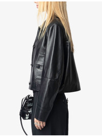 PRODUCT DETAILS - Zadig&Voltaire leather jacket - 100% lambskin leather - Exposed button fastenings at front - Regular fit, collar, long sleeves, two buttoned flap pockets at front - Specialist leather clean - True to size - Midweight, non-stretch Ref: R04424530