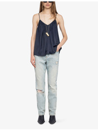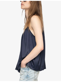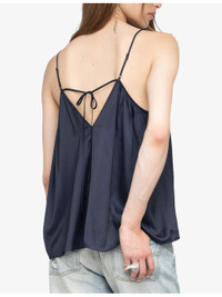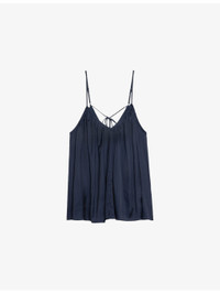 PRODUCT DETAILS - Zadig&Voltaire satin cami top - 100% polyester - Relaxed fit, V-neck, adjustable spaghetti straps, all-over gathered pleating, low V-shaped back, self-tie detail to back - Hand wash - True to size - Model is 5ft 10in/1.78m and wears a size small - Lightweight, non-stretch Ref: R04496094