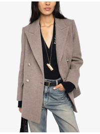 PRODUCT DETAILS - Zadig&Voltaire wool-blend coat - 74% wool, 23% polyamide, 2% polyester, 1% other fibres - Button fastening - Regular fit, double-breasted, peak lapels, long sleeves, side pockets - Dry clean - True to size - Model is 5ft 10in/1.78m and wears a size small - Midweight, non-stretch Ref: R04518151