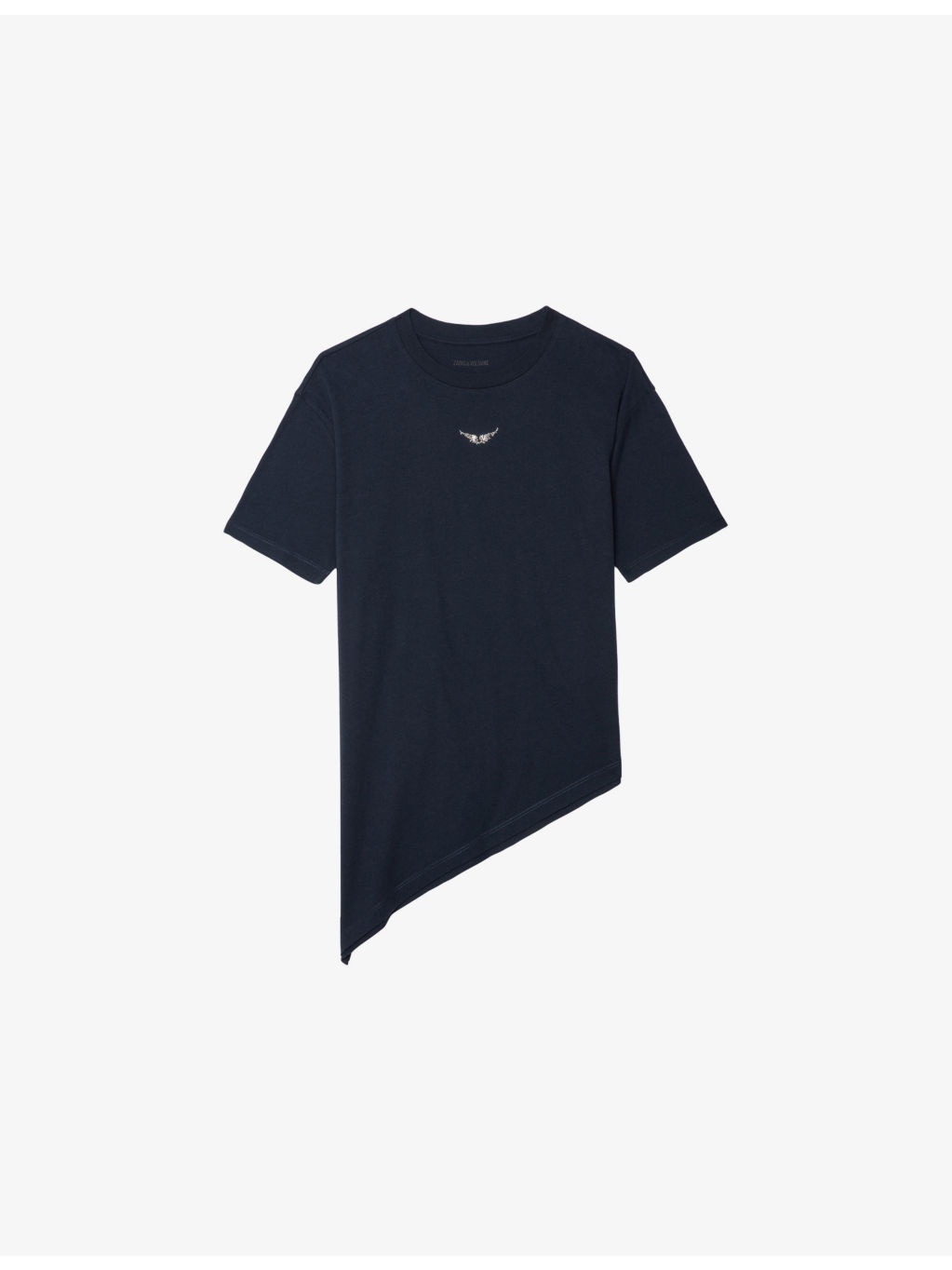 PRODUCT DETAILS - Zadig&Voltaire cotton-jersey T-shirt - 100% cotton - Relaxed fit, round neck, short sleeves, dropped shoulders, rhinestone-embellished branding at chest, asymmetric hem - Machine wash cold - True to size - Model is 5ft 9in/1.75m and wears a size small - Lightweight, non-stretch Ref: R04473655