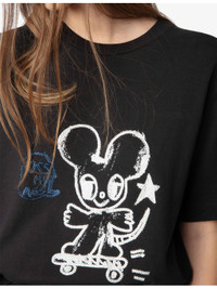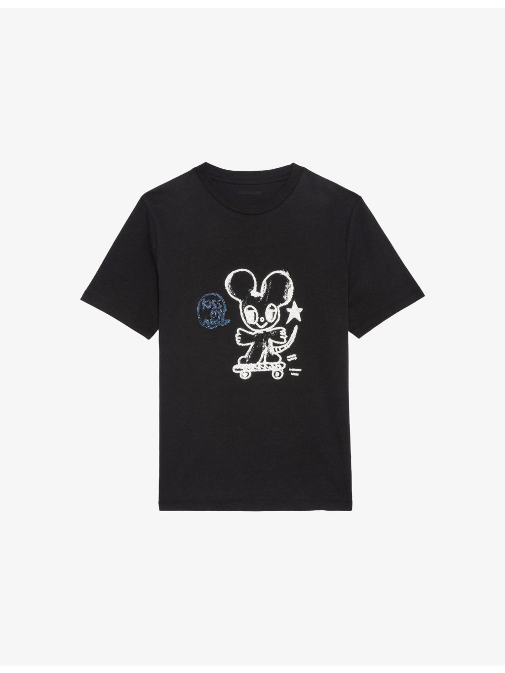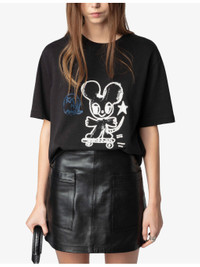 PRODUCT DETAILS - Zadig&Voltaire cotton T-shirt - 100% cotton - Slips on - Oversized fit, round neck, ribbed trim at neck, dropped shoulders, short sleeves, mouse motif adorned with rhinestones at front - Machine wash at 30°C - True to size - Lightweight, slight stretch Ref: R04434528