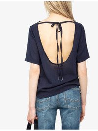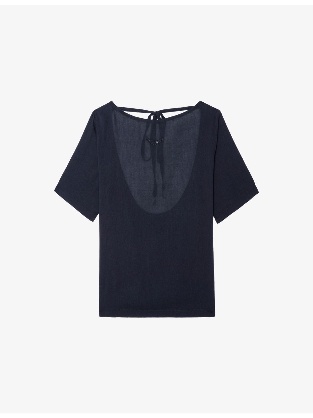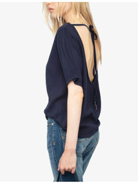PRODUCT DETAILS - Zadig&Voltaire cotton T-shirt - 53% cotton, 47% viscose - Relaxed fit, round neck, short sleeves, tie-detail at the back - Machine wash at 30°C - True to size - Model is 5ft 9in/1.75m and wears a size small - Lightweight, non-stretch Ref: R04472052