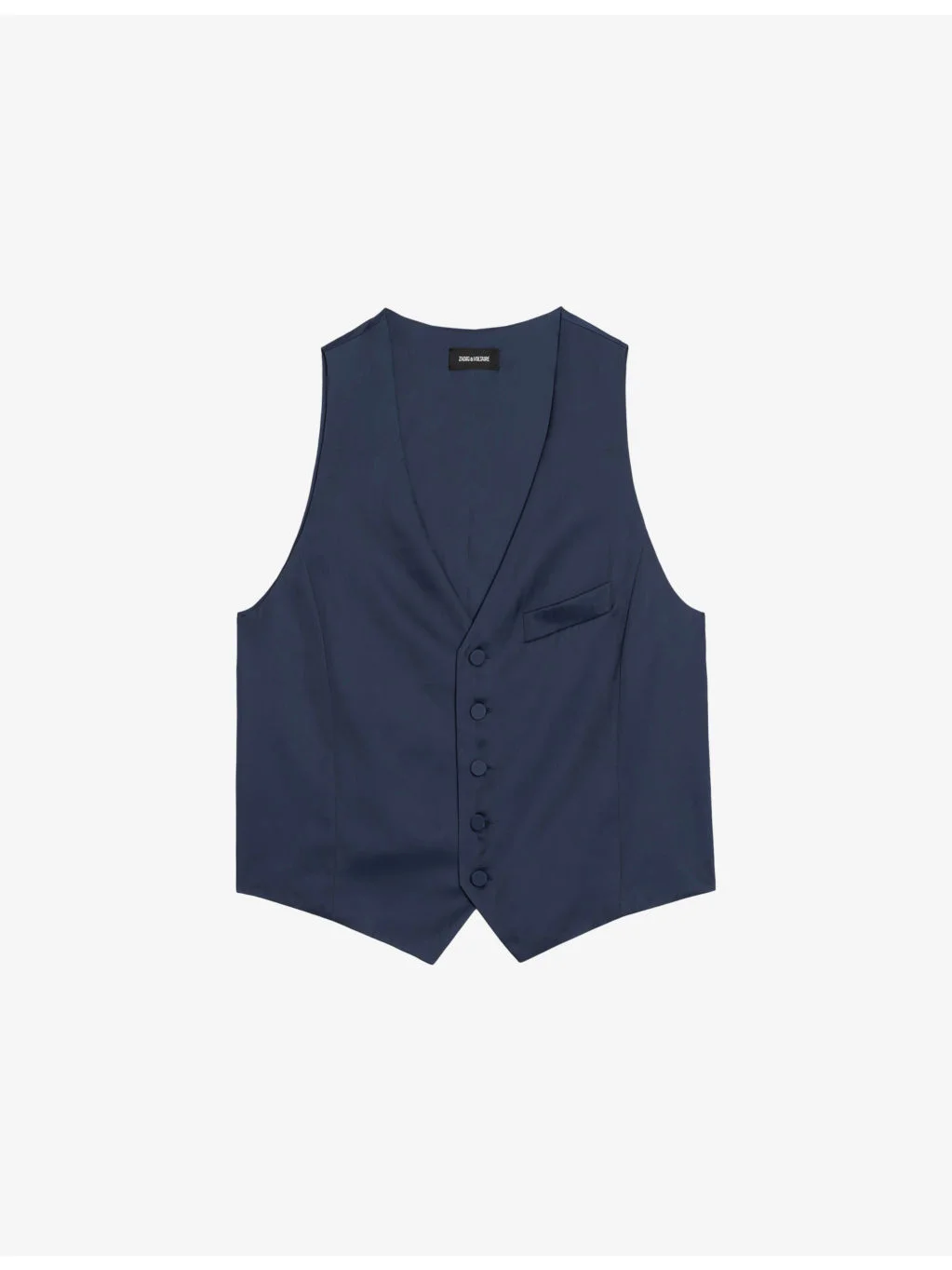 PRODUCT DETAILS - Zadig&Voltaire satin top - 57% polyester, 43% polyester - Exposed button fastening at front - Slim fit, V-neck, sleeveless, button-up design - Hand wash - True to size - Model is 5ft 8in / 1.73m and wears a size large - Lightweight, non-stretch Ref: R04331052
