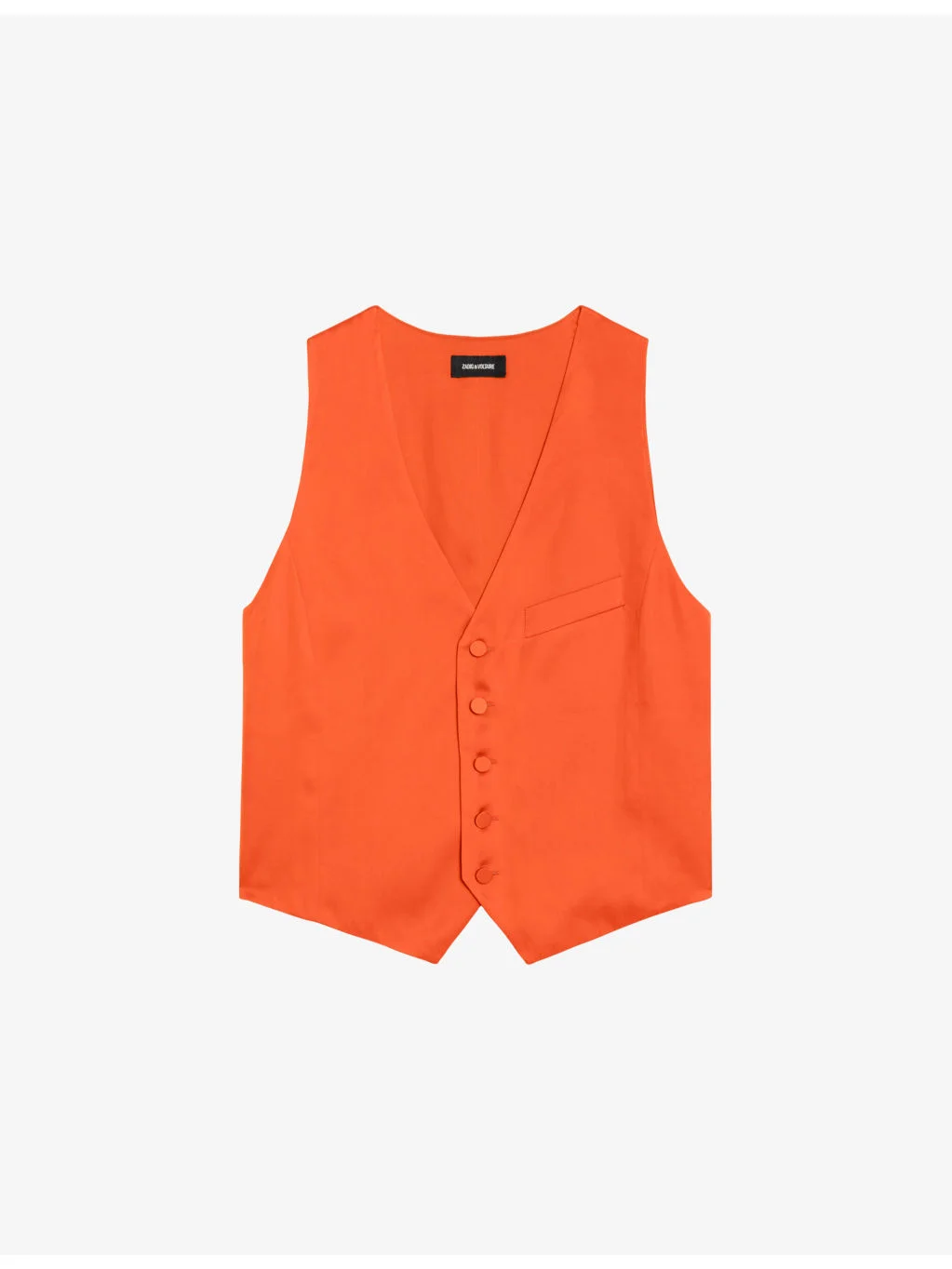 PRODUCT DETAILS - Zadig&Voltaire satin top - 57% polyester, 43% polyester - Exposed button fastening at front - Slim fit, V-neck, sleeveless, button-up design - Hand wash - True to size - Model is 5ft 8in / 1.73m and wears a size large - Lightweight, non-stretch Ref: R04331052