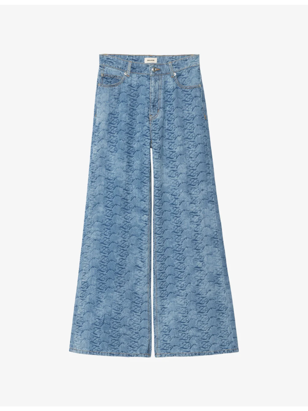 PRODUCT DETAILS - Zadig&Voltaire denim jeans - 100% cotton - Exposed button and concealed zip-fly fastening at front - Relaxed fit, high rise, wide leg, all-over monogram, belt loops, five pockets, contrast stitching, brand patch at back - Machine wash cold - True to size - Midweight, non-stretch Ref: R04601306