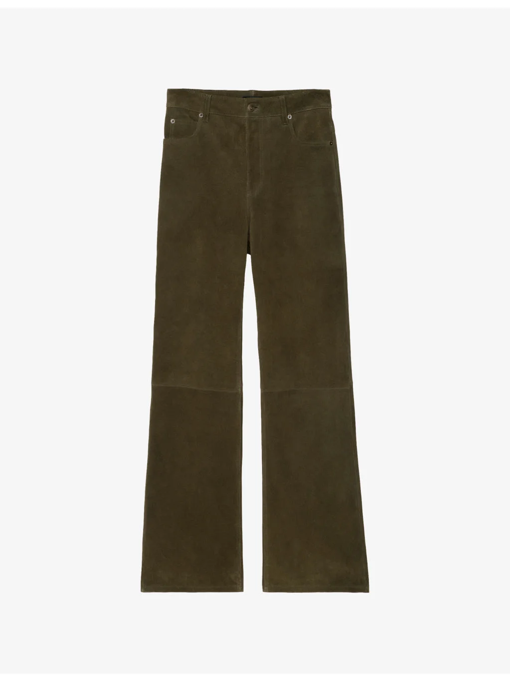 PRODUCT DETAILS - Zadig & Voltaire suede trousers - 100% cow leather - Button and zip-fly fastening - Regular fit, mid-rise, wide leg, structured waistband with belt loops, four pockets, brushed texture - Specialist leather clean - True to size - Model is 5ft 10in/1.78m and wears a size small - Midweight, slight stretch Ref: R04582192