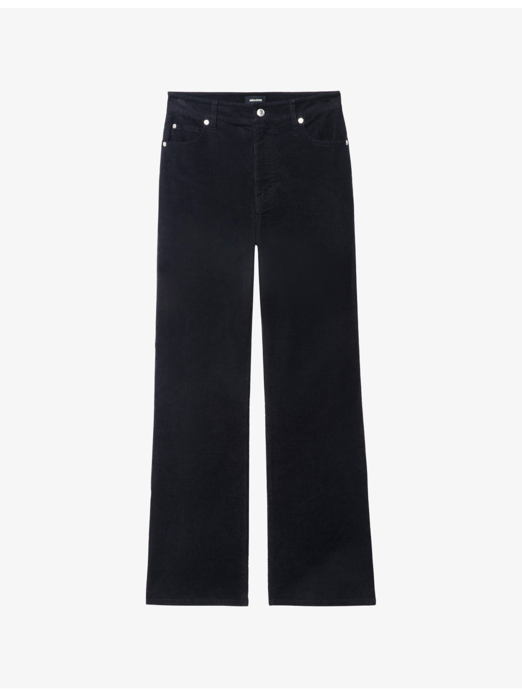 PRODUCT DETAILS - Zadig&Voltaire stretch-cotton corduroy trousers - 98% cotton, 2% elastane - Exposed button and concealed zip-fly fastening at front - Regular fit, mid rise, belt loops, five pockets, metal rivets at front, pockets, wide leg, corduroy texture, branded leather patch at back - Machine wash at 30°C - True to size - Model is 5ft 10in/1.78m and wears a size UK 8 - Midweight, slight stretch Ref: R04493866