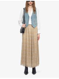 PRODUCT DETAILS - Zadig&Voltaire chiffon maxi skirt - 97% viscose, 3% metallic fibre - Concealed zip fastening at back - Regular fit, high waist, all-over paisley print, all-over metallic stripes, semi-sheer chiffon, lined, gathered pleating, side slit, maxi length - Hand wash - True to size - Model is 5ft 10in/1.78m and wears a size UK 8 - Lightweight, non-stretch Ref: R04496098