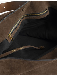 PRODUCT DETAILS - Zadig&Voltaire suede shoulder bag - 100% cow leather - Magnetic fastening - Slouchy shape, adjustable and removable leather handle, embossed wings signature at front, one main compartment, one interior zip pocket, gold-toned hardware - Height 43cm, width 34.5cm, depth 15cm, handle drop 28cm - Specialist leather clean Ref: R04554814