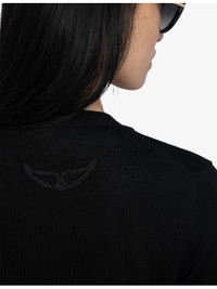 PRODUCT DETAILS - Zadig&Voltaire merino-wool cardigan - 100% merino wool - Exposed button fastening at front - V-neck, long sleeves, split ribbed cuffs, embroidered wings at back, heart, star and round diamante buttons - Hand wash - True to size - Model is 5ft 8in / 1.73m and wears a size small - Midweight, non-stretch Ref: R04366344