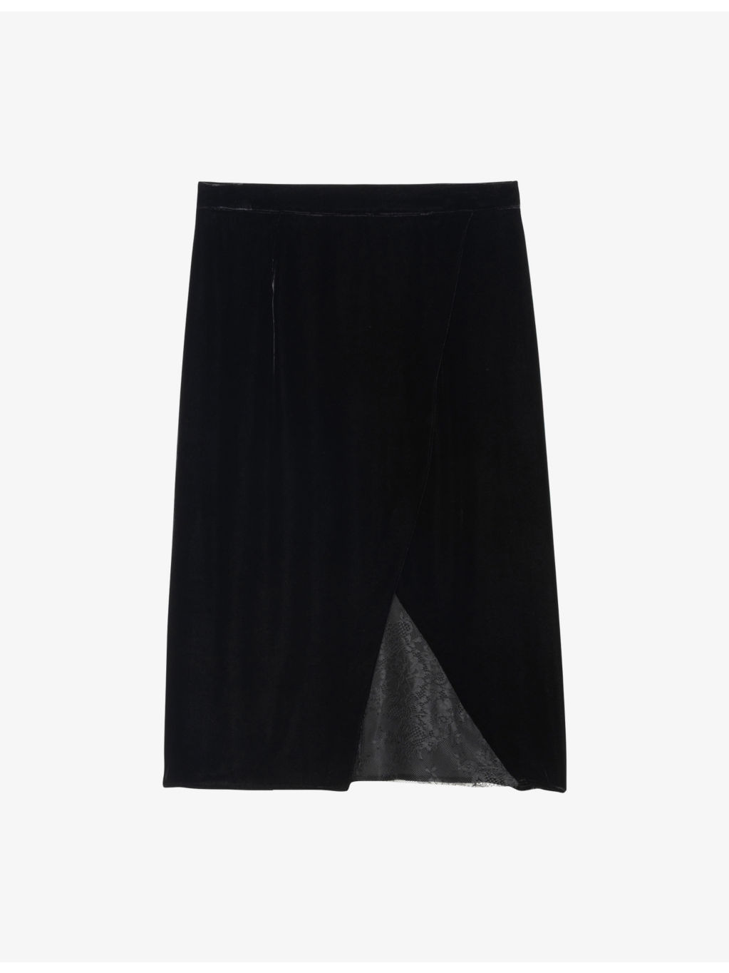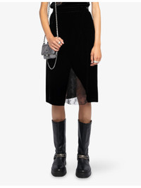 PRODUCT DETAILS - Zadig&Voltaire velvet skirt - 80% viscose, 20% silk - Concealed zip fastening at the back - Regular fit, mid-rise, fluid wrap cut - Hand wash - True to size - Model is 5ft 9in/1.75m and wears a size small - Lightweight, non-stretch Ref: R04547025