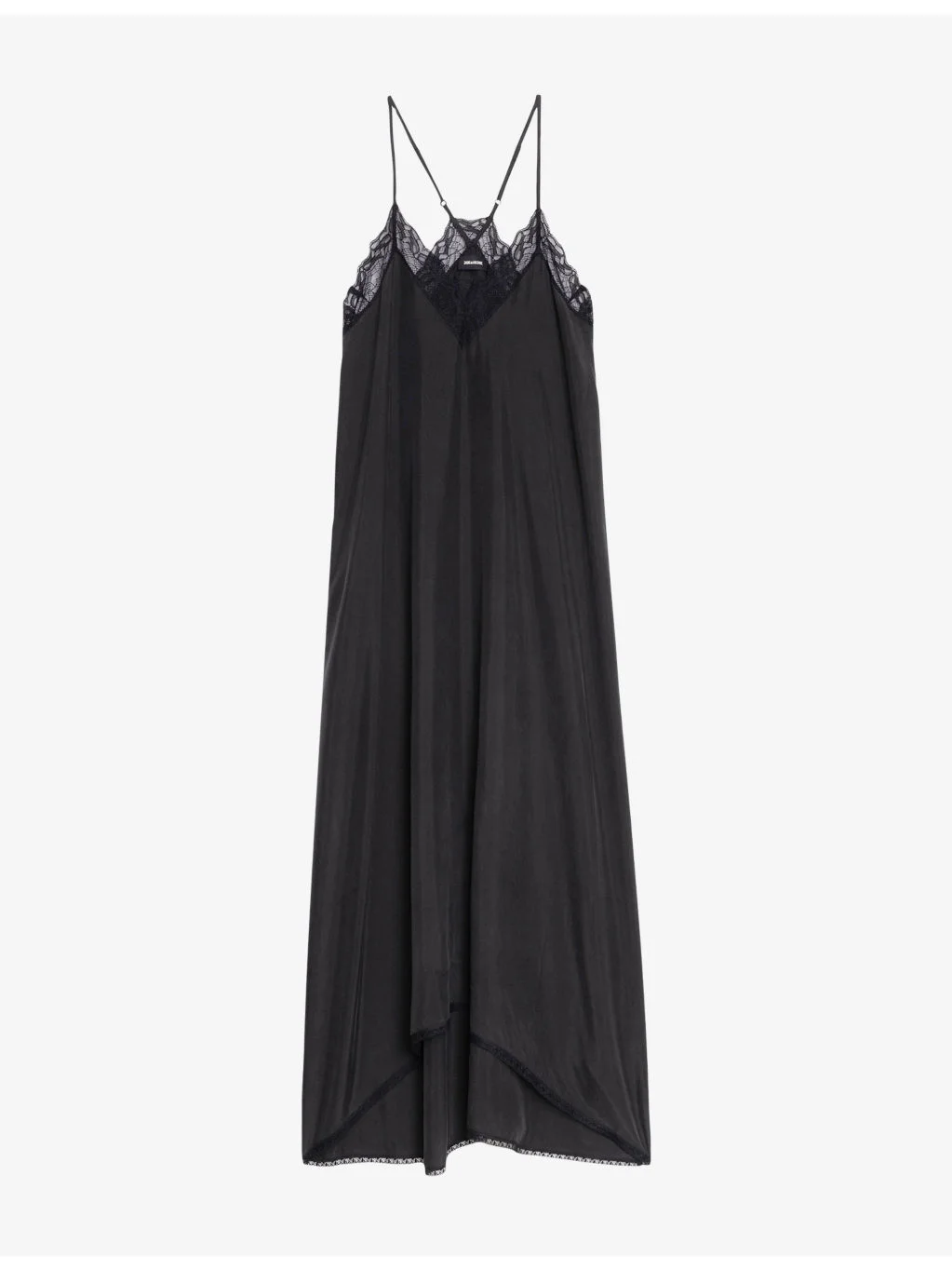 PRODUCT DETAILS - Zadig&Voltaire silk dress - 100% silk - Relaxed fit, straight cut, midi length, v-neck, adjustable spaghetti straps, lace trim - Dry clean - True to size - Model is 5ft 10in/1.78m and wears a size UK 8 - Lightweight, non-stretch Ref: R04594773