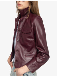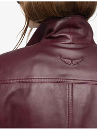 PRODUCT DETAILS - Zadig&Voltaire leather jacket - 100% lambskin leather - Button fastening - Regular fit, pointed collar, long sleeves, milted cuffs, embroidered wings logo at chest, two patch pockets at chest, two welt pockets at sides, topstitching - Specialist leather clean - True to size - Model is 5ft 9in/1.75m and wears a size small - Midweight, non-stretch Ref: R04375280