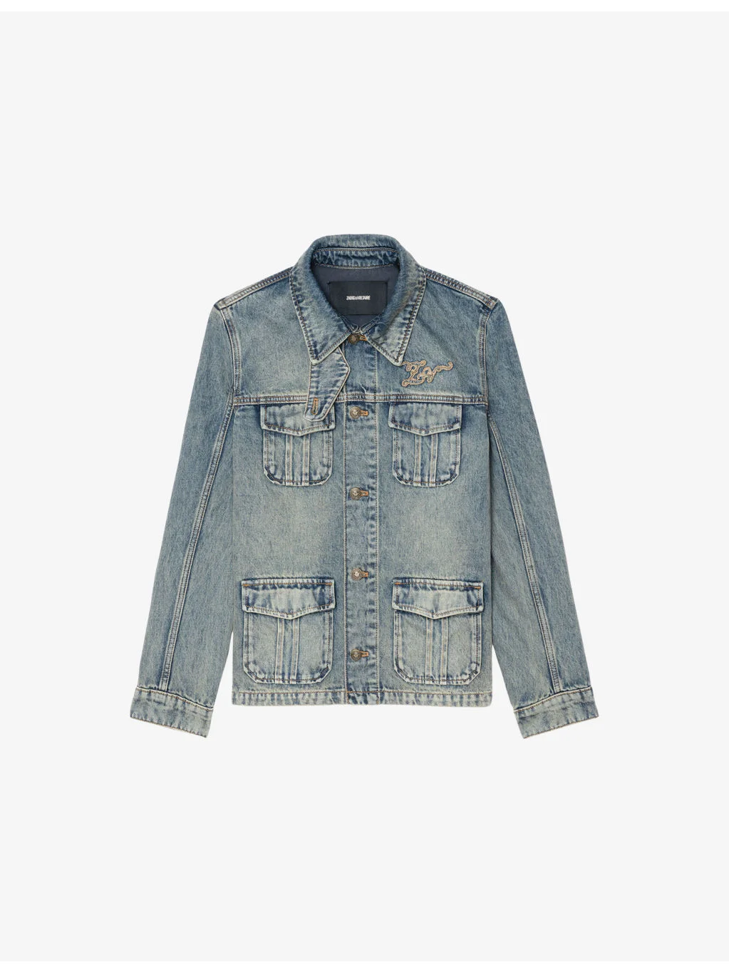 PRODUCT DETAILS - Zadig&Voltaire denim jacket - 100% cotton - Exposed button fastening at front - Relaxed fit, collar with removable wings, long sleeves, four patch pockets at the front - Dry clean - True to size - Model is 5ft 10in/1.78m and wears a size S - Midweight, non-stretch Ref: R04611403