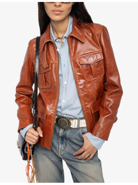 PRODUCT DETAILS - Zadig&Voltaire leather jacket - 100% leather - Exposed zip fastening - Slim fit, collared, two patch pockets at the chest, long sleeves, branded hardware - Specialist leather clean - True to size - Model is 5ft 10in/1.78m and wears a size small - Heavyweight, non-stretch Ref: R04519629