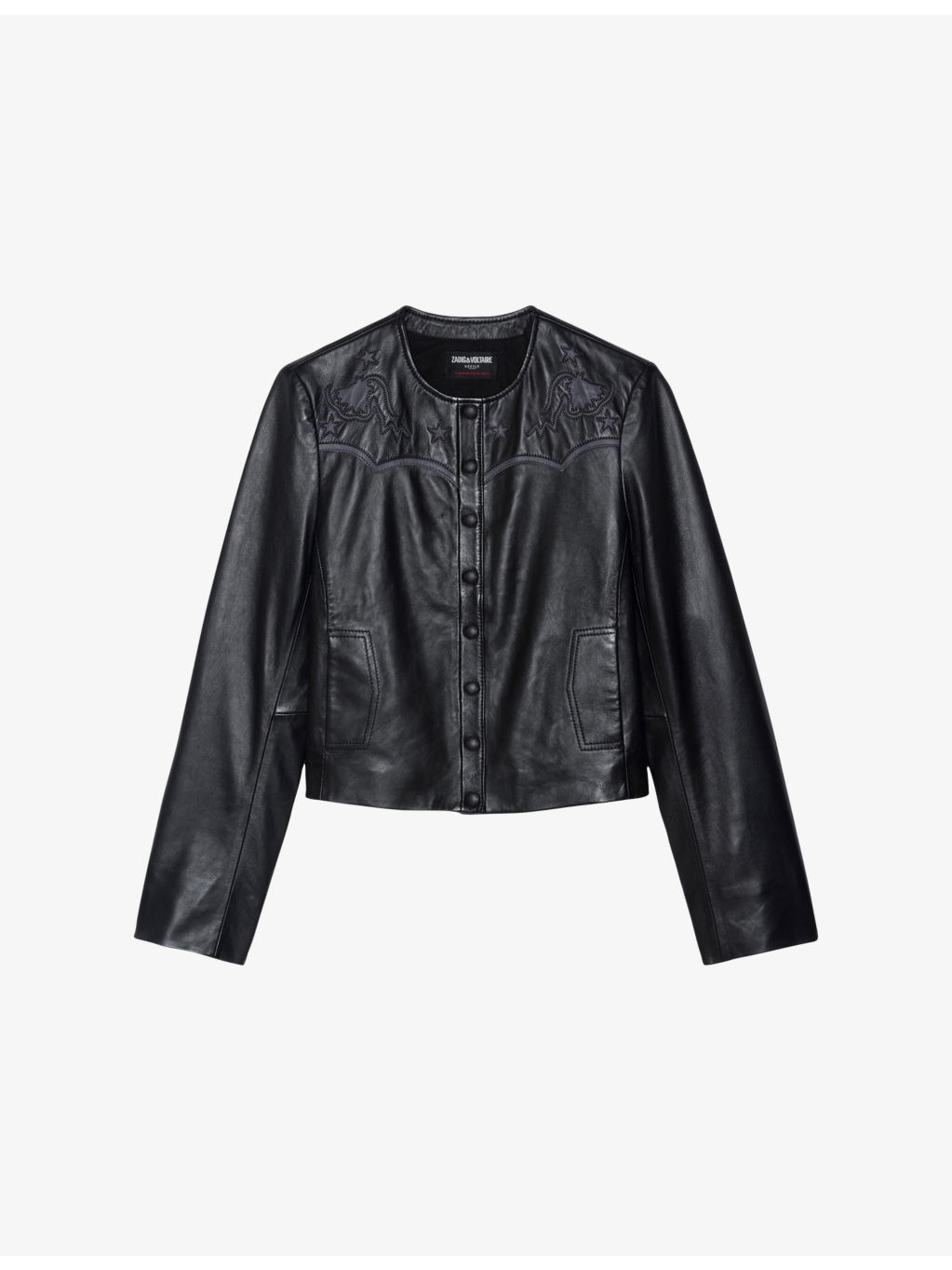 PRODUCT DETAILS - Zadig&Voltaire leather jacket - 100% leather - Snap fastening - Regular fit, round neck, long sleeves, Western panels - Specialist leather clean - True to size - Model is 5ft 10in/1.78m and wears a size small - Midweight, non-stretch Ref: R04532246