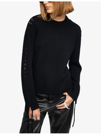 PRODUCT DETAILS - Zadig&Voltaire wool and cashmere-blend jumper - 90% wool, 10% cashmere - Round neck, long sleeves, lace detail, frayed trims - Hand wash - True to size - Lightweight, slight stretch Ref: R04557685