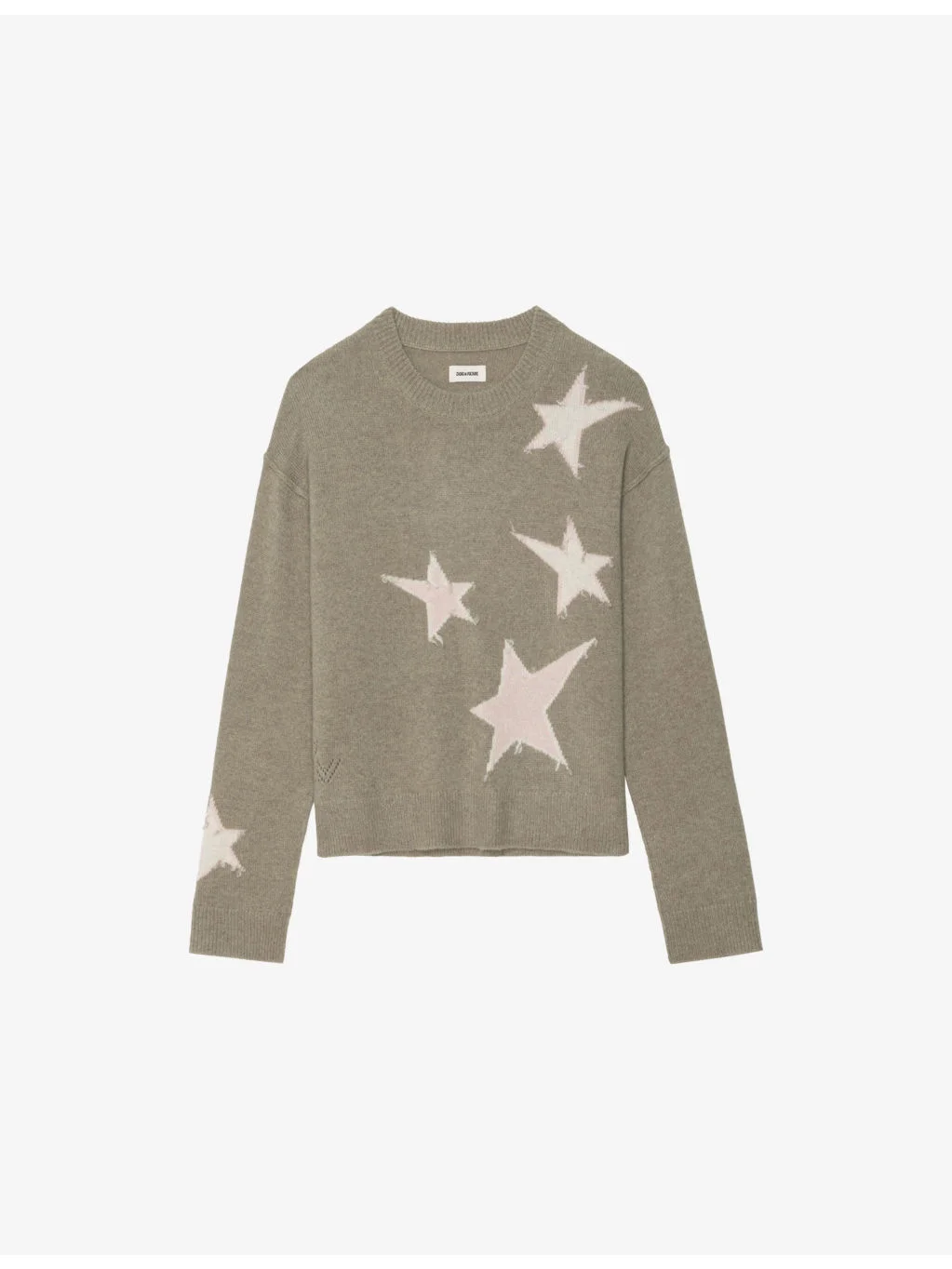 PRODUCT DETAILS - Zadig&Voltaire cashmere jumper - 100% cashmere - Relaxed fit, round-neck, dropped shoulders, long sleeves, ribbed trims, distressed star motifs - Hand wash - True to size - Model is 5ft 10in/1.78m and wears a size small - Midweight, slight stretch Ref: R04570607