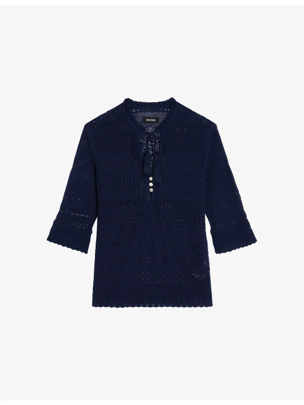 PRODUCT DETAILS - Zadig&Voltaire cotton top - 100% cotton - Regular fit, Henley neck, short sleeves, pointelle detail - Machine wash at 30°C - True to size - Model is 5ft 9in/1.75m and wears a size UK 8 - Lightweight, non-stretch Ref: R04617337