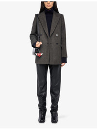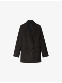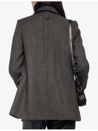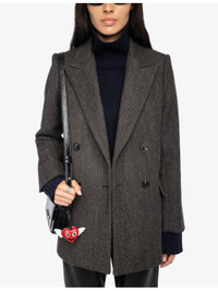 PRODUCT DETAILS - Zadig&Voltaire wool blend coat - 56% wool, 24% virgin wool, 20% polyamide - Button fastening at front - Peak lapel, double-breasted, padded shoulders, long sleeves, two flap pockets at front, all-over chevron pattern - Dry clean - True to size - Midweight, non-stretch Ref: R04525057