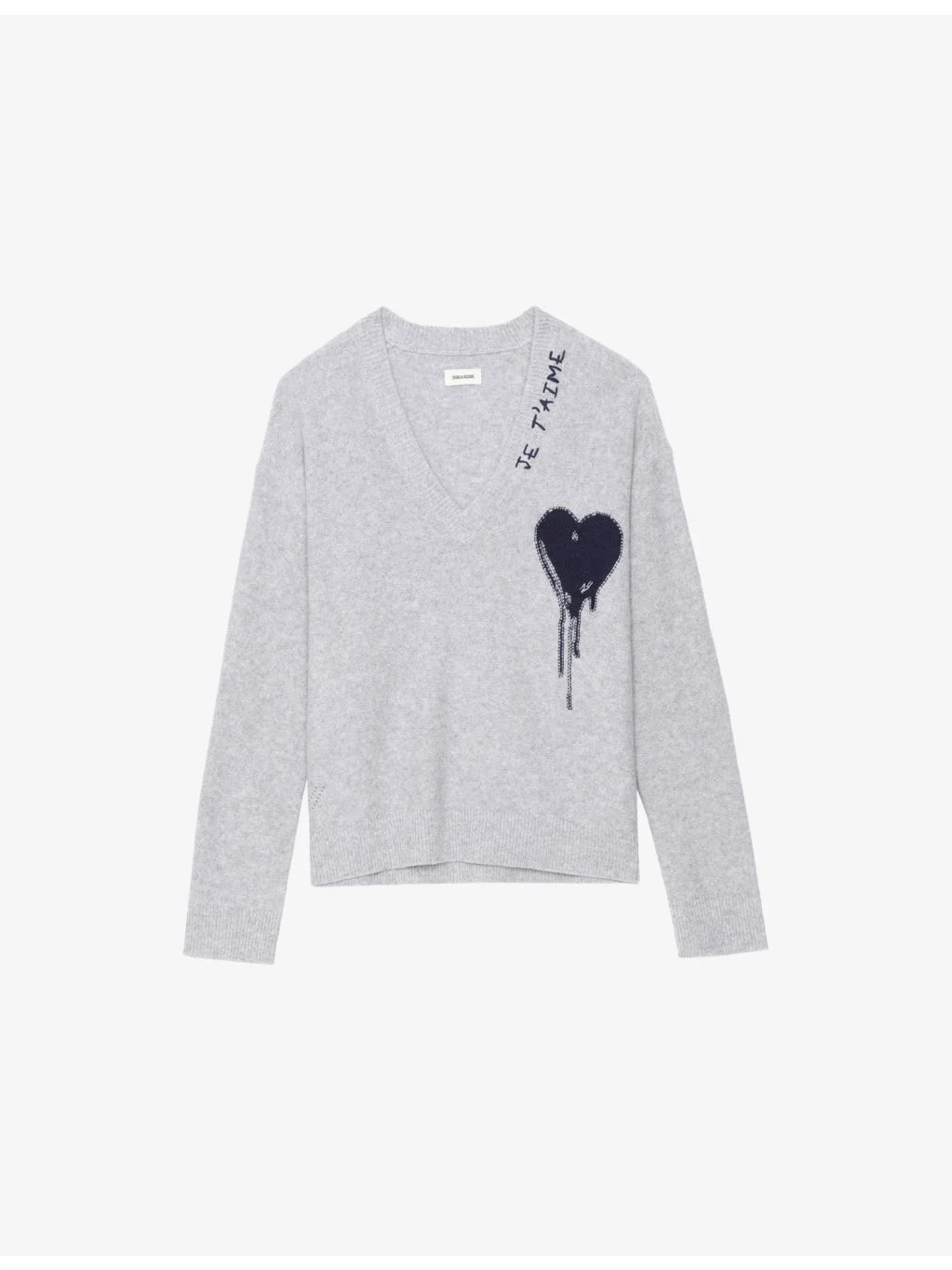 PRODUCT DETAILS - Zadig&Voltaire cashmere jumper - 100% cashmere - Relaxed fit, V-neck, long sleeves, dropped shoulders, heart and lettering intarsia, ribbed trims - Hand wash - True to size - Model is 5ft 10in/1.78m and wears a size small - Midweight, non-stretch Ref: R04576551