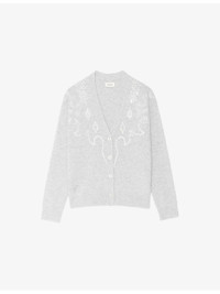 PRODUCT DETAILS - Zadig&Voltaire cashmere cardigan - 100% cashmere - Button fastening - Relaxed fit, V-neck, long sleeves, western-inspired rhinestone embellishment - Hand wash - True to size - Model is 5ft 9in/1.75m and wears a size small - Midweight, slight stretch Ref: R04560500