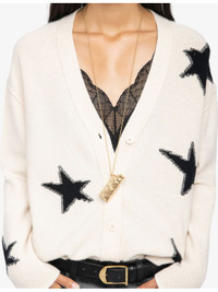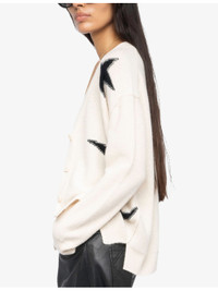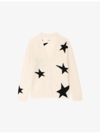 PRODUCT DETAILS - Zadig&Voltaire cashmere cardigan - 100% cashmere - Exposed button fastening at front - Relaxed fit, V-neck, long sleeves, all-over star motif - Hand wash - True to size - Model is 5ft 10in/1.78m and wears a size small - Midweight, non-stretch Ref: R04529250