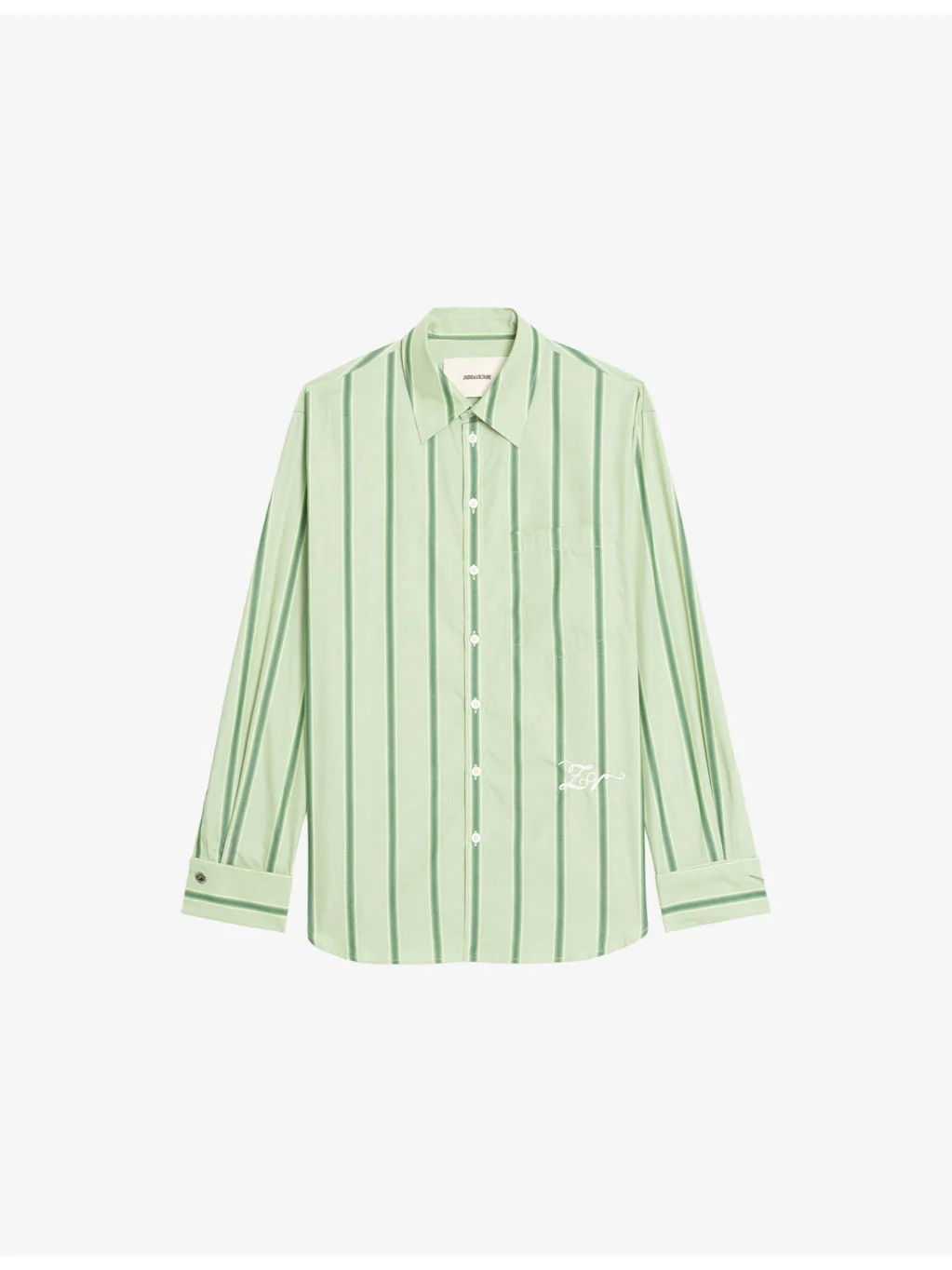PRODUCT DETAILS - Zadig&Voltaire cotton-poplin shirt - 100% cotton - Exposed button fastening at front - Relaxed fit, collar, long sleeves, striped, chest pocket, embroidered branding at front - Hand wash - True to size - Model is 5ft 10in/1.78m and wears a size small - Lightweight, non-stretch Ref: R04602670